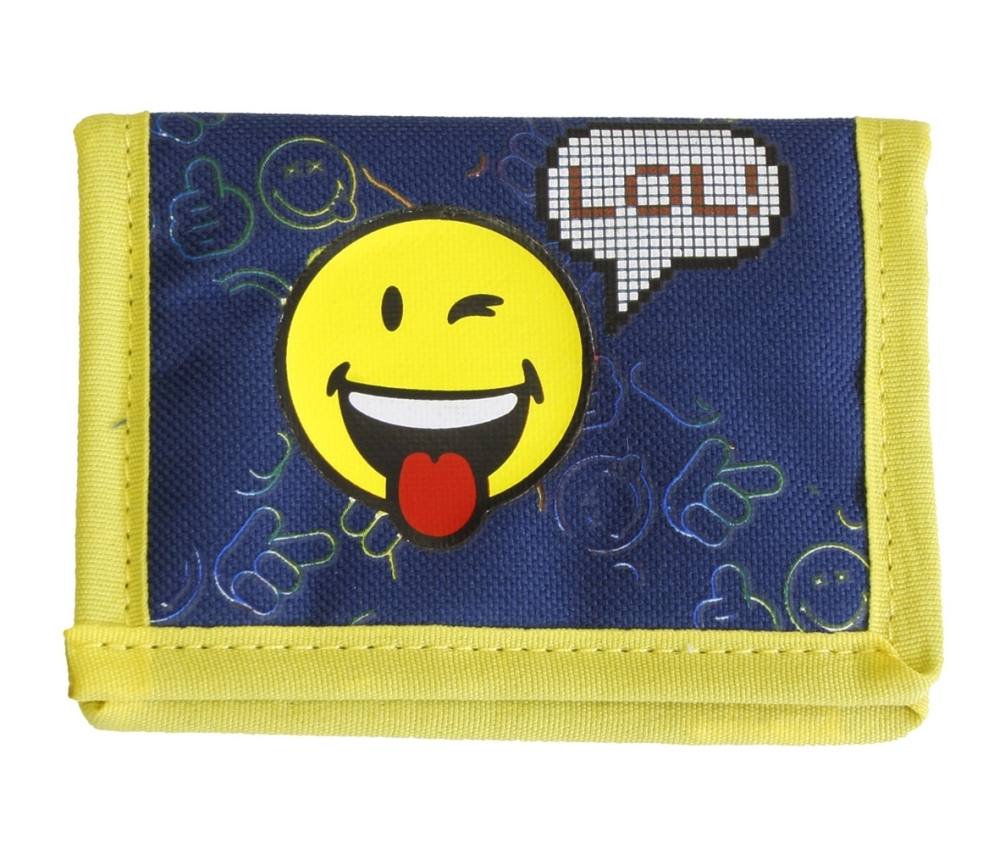 Denarnica z motivom Smiley. Mere denarnice so 12X9 cm in se zapira na ježka.