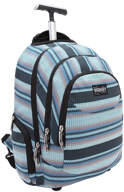 Nahrbtnik Street Trolley je kakovosten ovalni nahrbtnik s kolesi in ročajem. Ima nastavljive in podložene naramnice. V notranjosti je več prekatov za lažjo razdelitev šolskih potrebščin. Za lažje odpiranje ima večje, kakovostne zadrge. Dimenzije: 32×22×45 cm