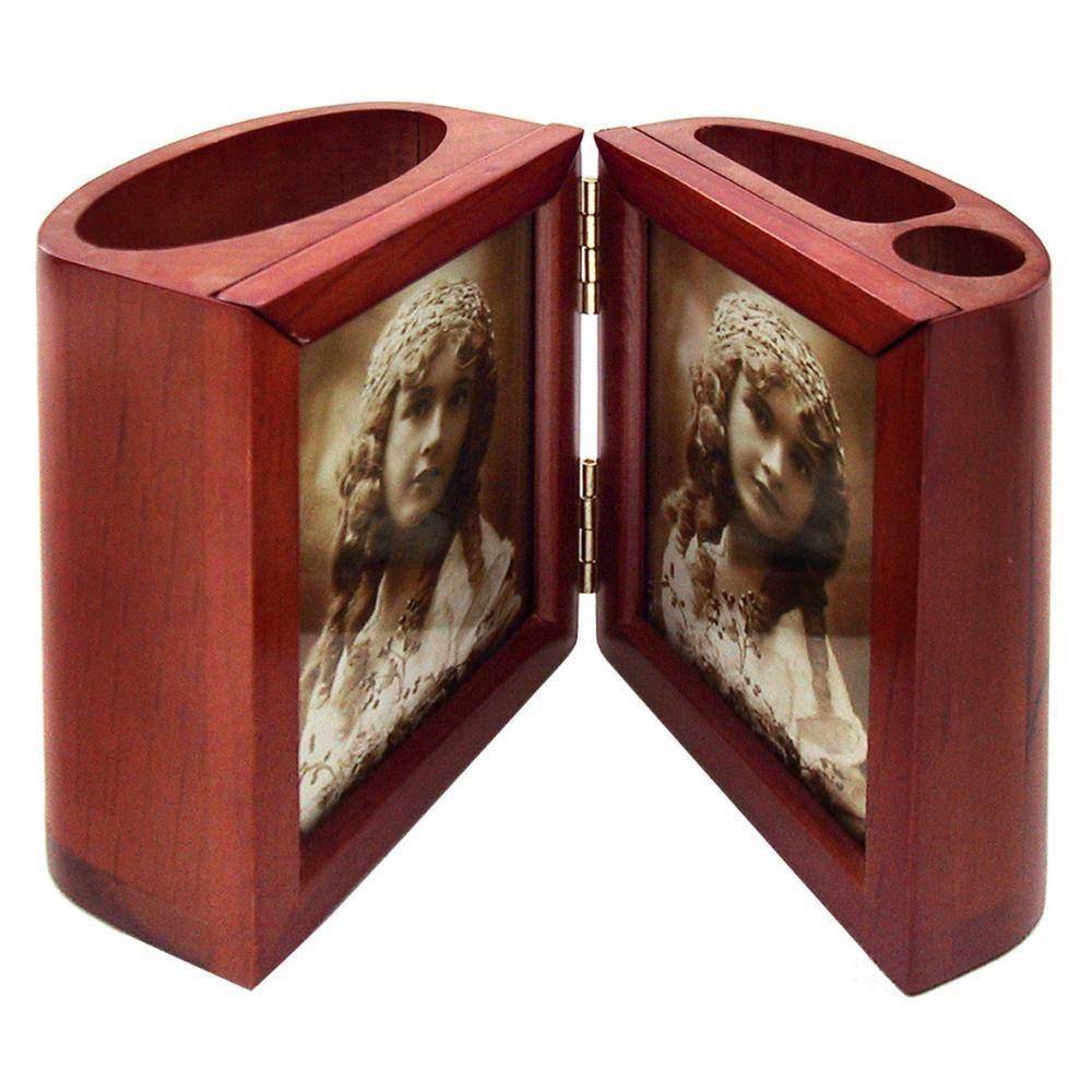 Leseno držalo za svinčnike z okvirjema za fotografiji.