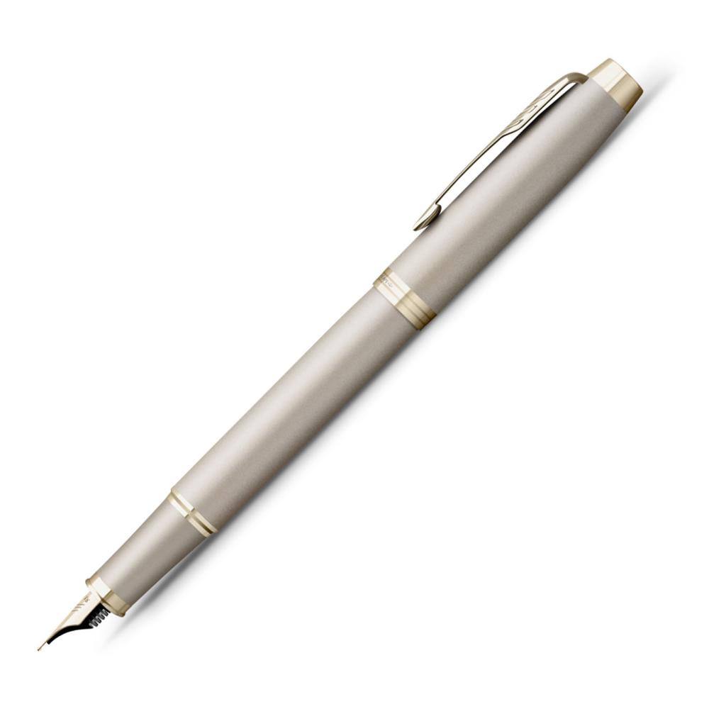 Nalivno pero Parker IM Monochrome Champagne.#13#10- Ohišje iz kovine v barvi šampanjca.#13#10- PVD prevleka sponk in obrob proti obrabi in eroziji.#13#10- Konica iz nerjavečega jekla.#13#10- Debelina konice F.
