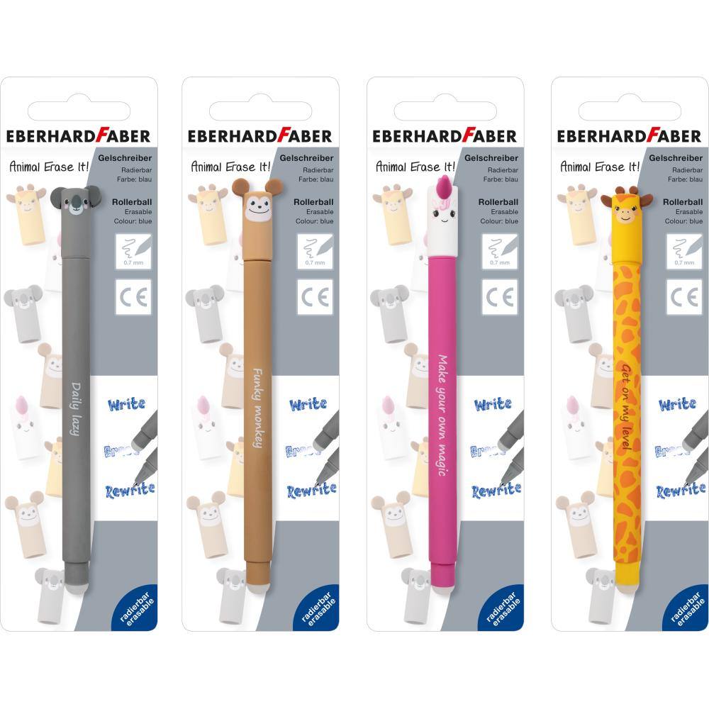 - Gel pisalo Eberhard Faber v modri barvi.#13#10- Gladko in tekoče pisanje.#13#10- Roler ima radirko, ki briše tinto.#13#10- Na pokrovčku simpatičen motiv živali.#13#10- Sortirani motivi.