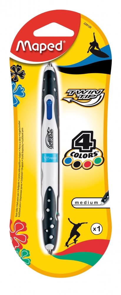 Kemični svinčnik Maped je štiribarvni kemik, ki ima mine v modri, črni, rdeči in zeleni barvi.