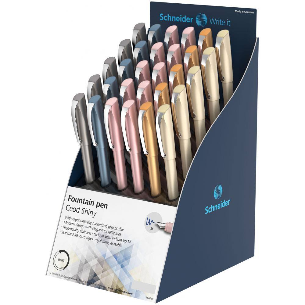 - Ergonomsko gumiran oprijem.#13#10- Iridijeva konica debeline M.#13#10- Privlačen dizajn s čvrsto kovinsko sponko na pokrovčku.#13#10- Standardni črnilni vložki.#13#10- Za desničarje in levičarje.#13#10- V displeju 30 peres, mix barv.