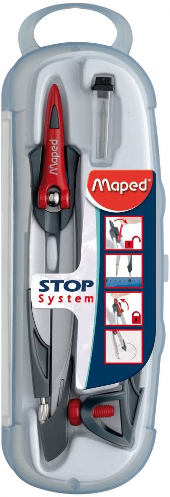 šestilo Maped z stop sistemom za zaklepanje, v setu so priložene mine za šestilo in nastavek za svinčnik.