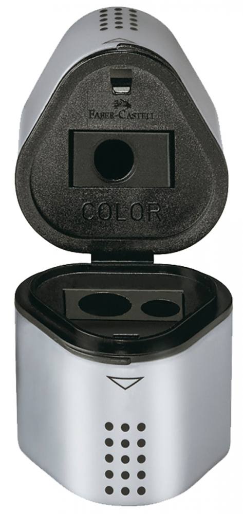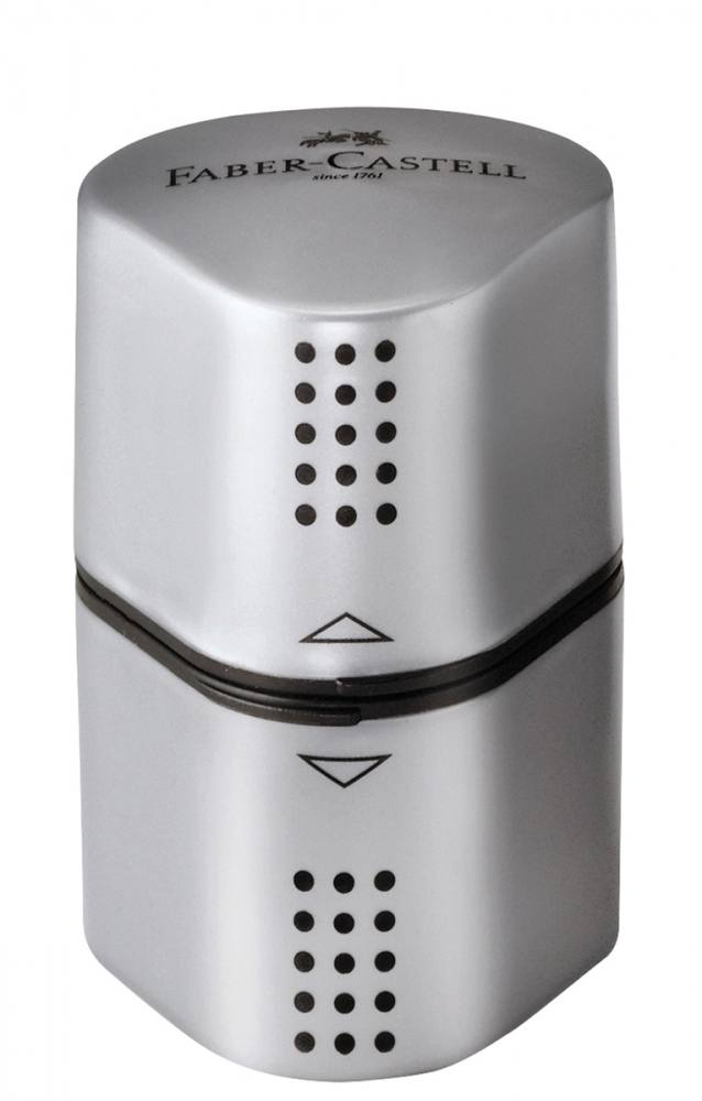 Šilček Grip-siv:-primeren za standardne in jumbo svinčnikein barvice-za vse oblike-z posodico za ošilke na obeh straneh