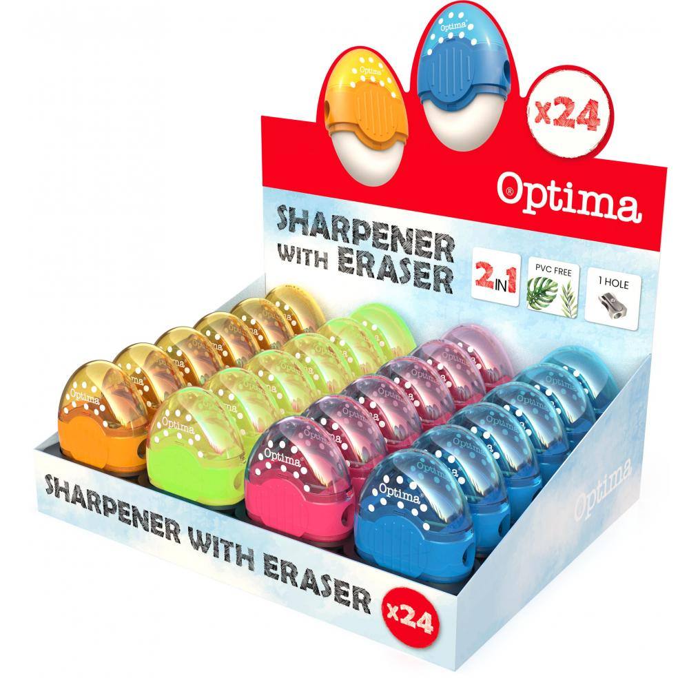 Šilček in radirka Optima Fluo