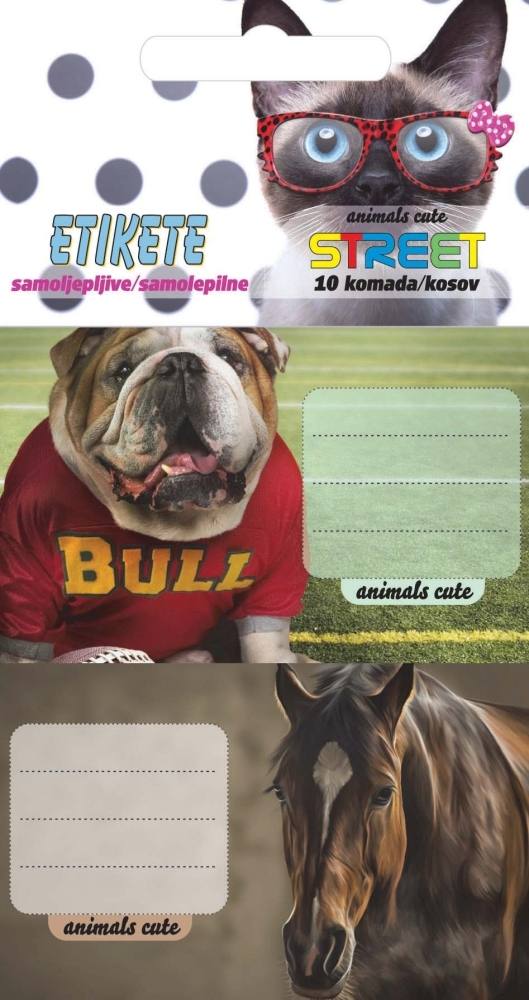 10 etiket z različnimi motivi za označevanje zvezkov.