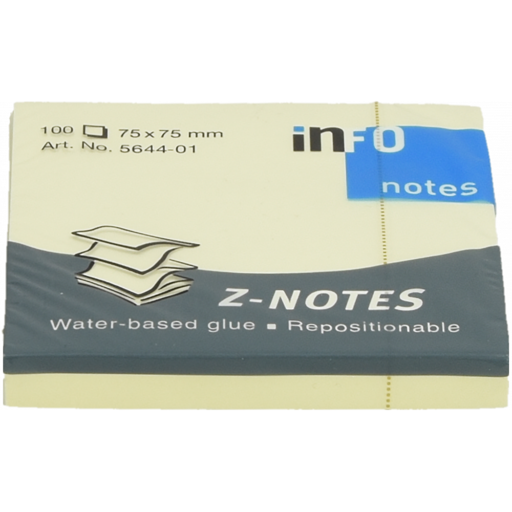 Dimenzija 75 x 75 mm. 100 lističev v bloku, rumena barva.