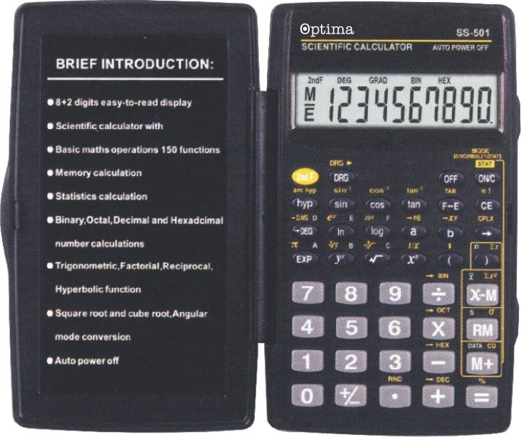 Tehnični kalkulator s 150 funkcijami. Navodila v slovenskem jeziku. Zaslon 8 mest, baterijsko napajanje.